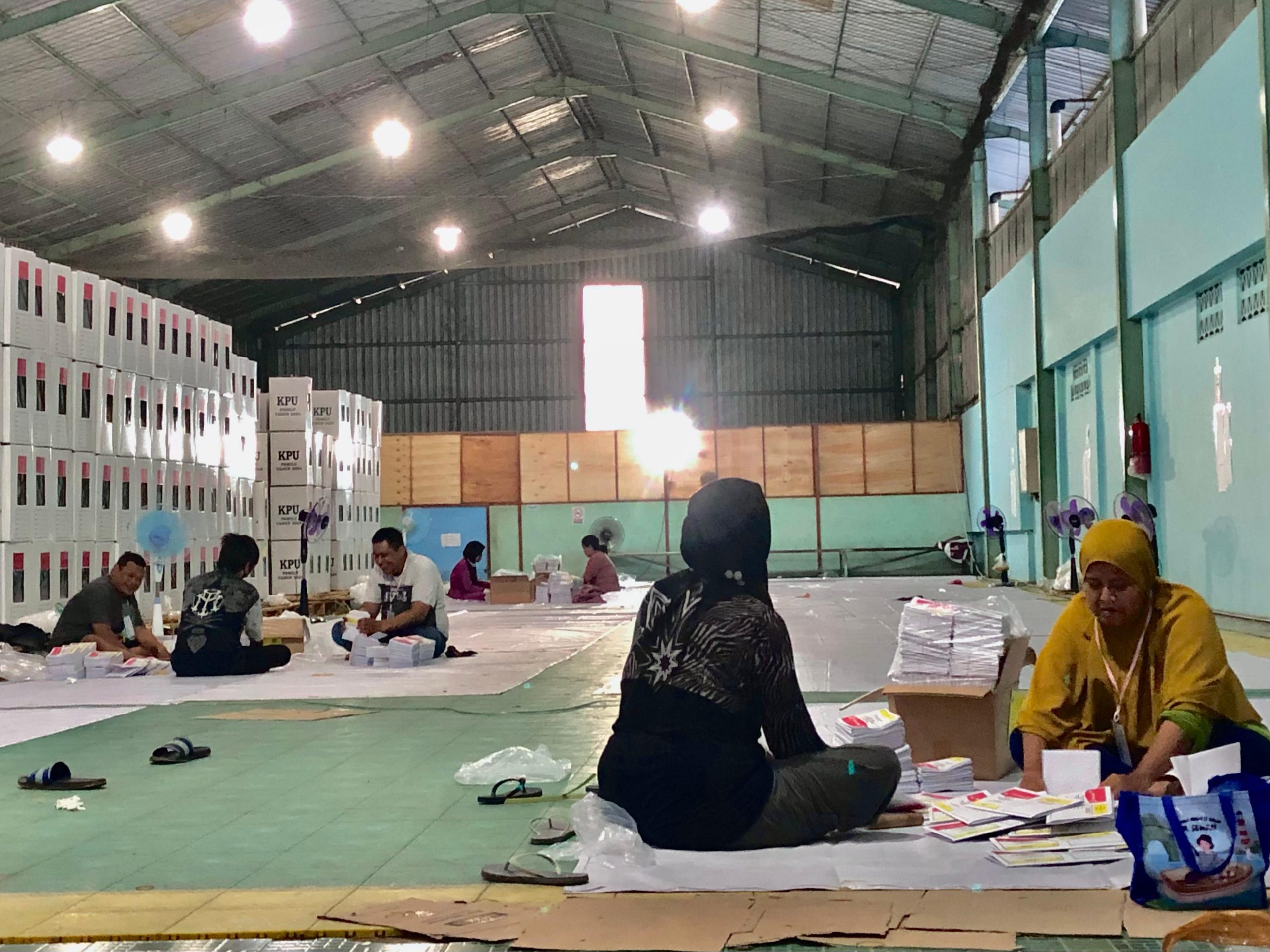 100 Pekerja Gerak Cepat Melipat Surat Suara di Gudang Logistik KPU Banjarbaru