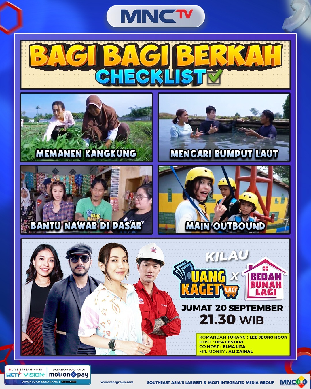Saksikan Kilau Uang Kaget Lagi x Bedah Rumah Lagi pada Jumat, 20 September 2024, pukul 21.30 WIB hanya di MNCTV Selalu di Hati. (Kanalkalimantan.com/kk)
