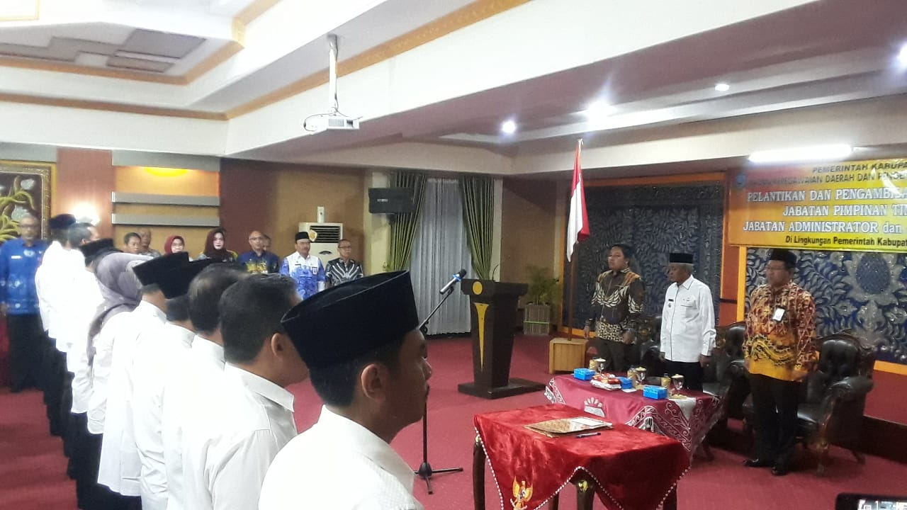 MARTAPURA, Bupati Banjar KH Khalilulrahman akhirnya melantik 145 pejabat di lingkungan Pemkab Banjar setelah shalat Isya di Mahligai Sultan Adam Martapura, Selasa (7/1) malam.
