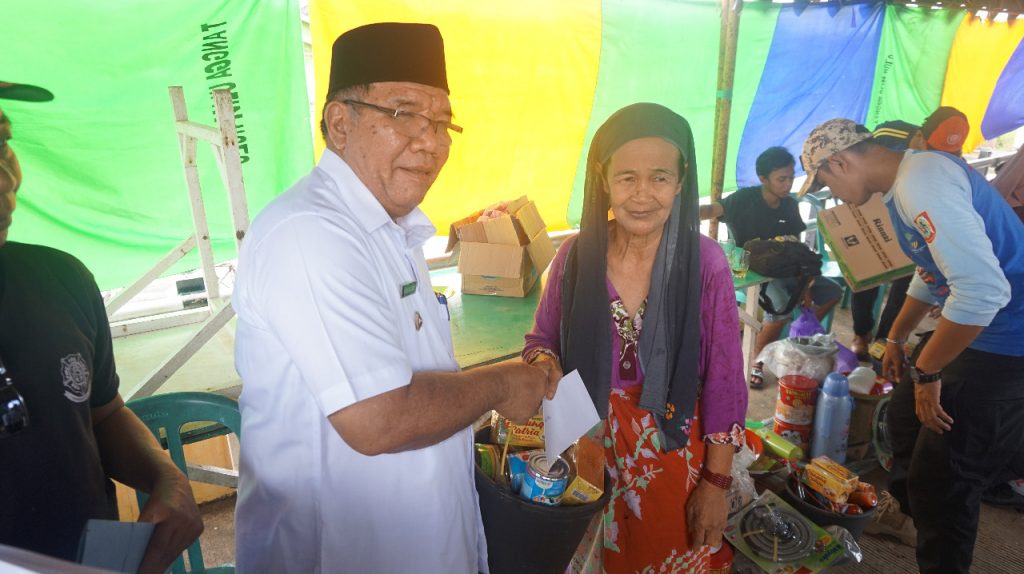 Wakil Bupati HSU Husairi Abdi menyerahkan bantuan korban kebakaran. foto: dew