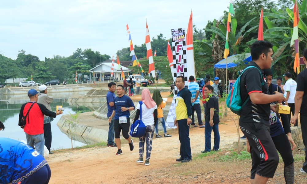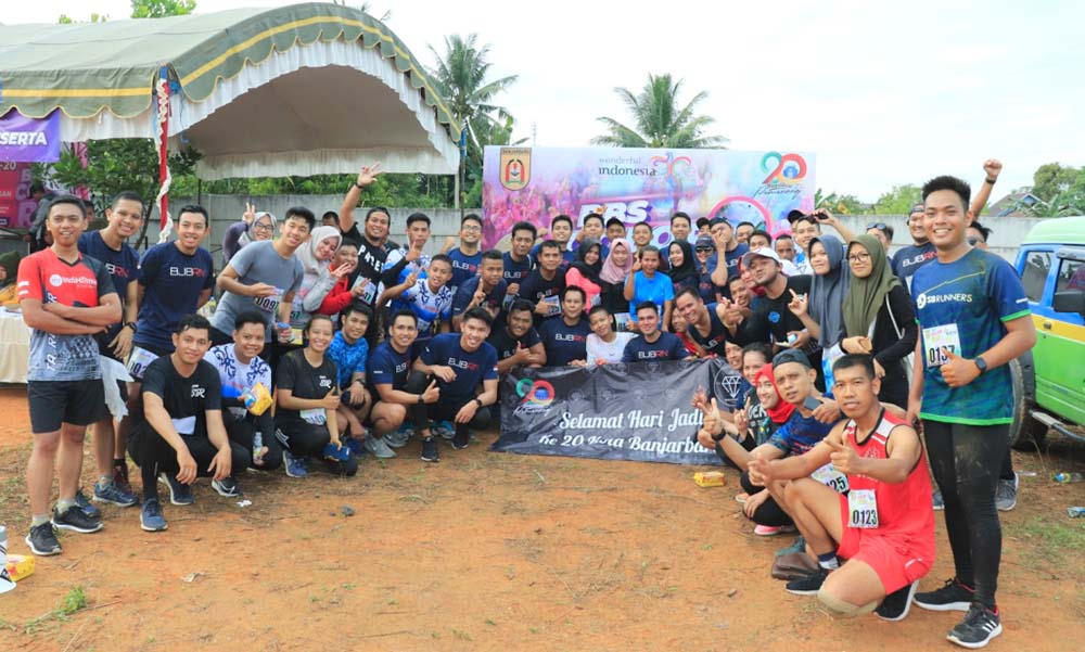 BANJARBARU, Sebanyak 160 pelari ikut ambil bagian di event Banjarbaru Selatan Colour Run 2019 dalam rangka Hari Jadi ke-20 Kota Banjarbaru di embung Sidodadi, Loktabat Selatan, Sabtu (27/4/2019).