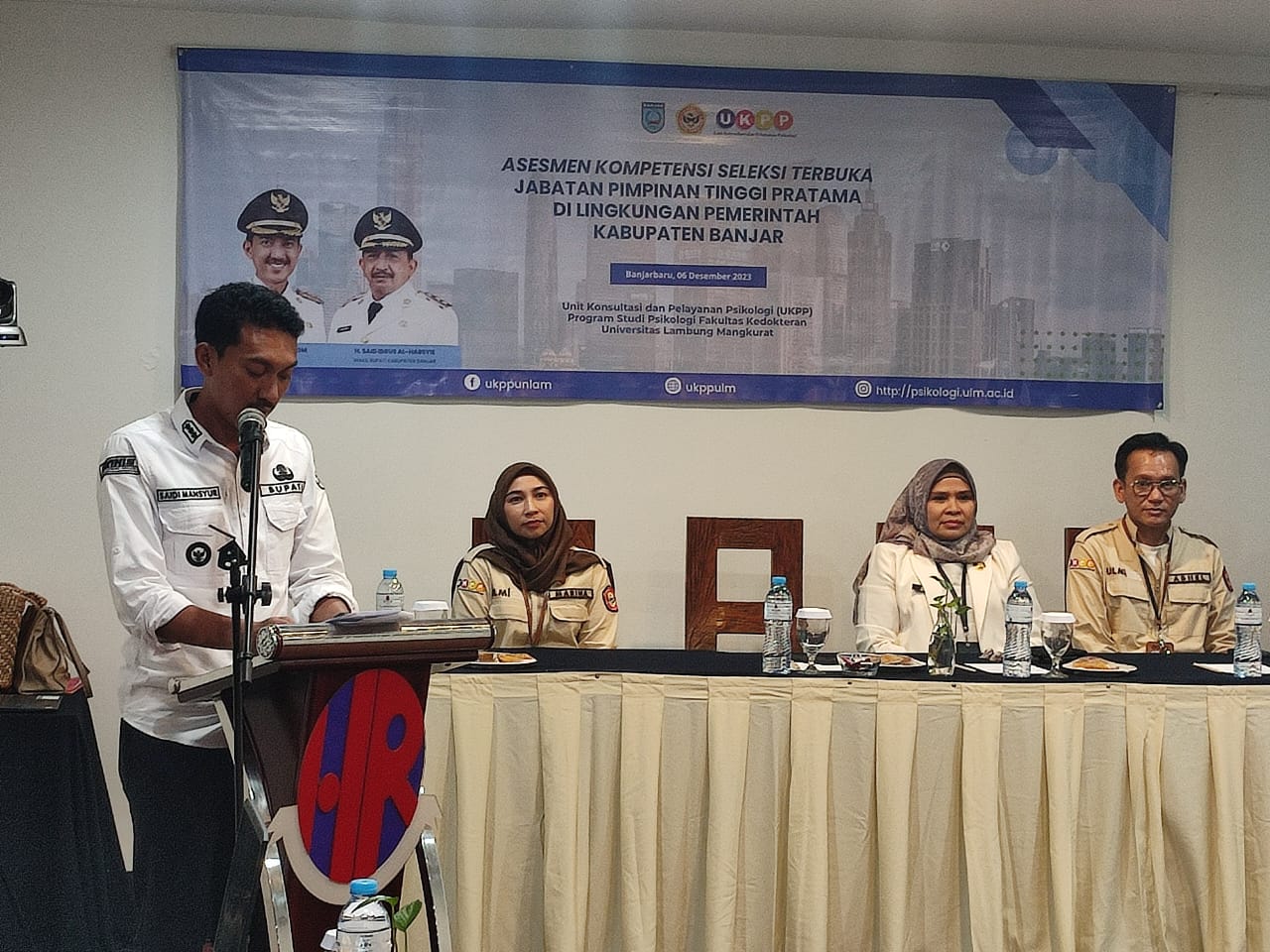 Tim penilai seleksi dari Universitas Lambung Mangkurat (ULM), Universitas Islam Kalimantan, Kepala Inspektorat Provinsi Kalsel dan Kepala BKPSDM Banjar serta Asesor Tes dari Fakultas Kedokteran ULM. (kanalkalimantan.com/diskominfobanjar/kk)