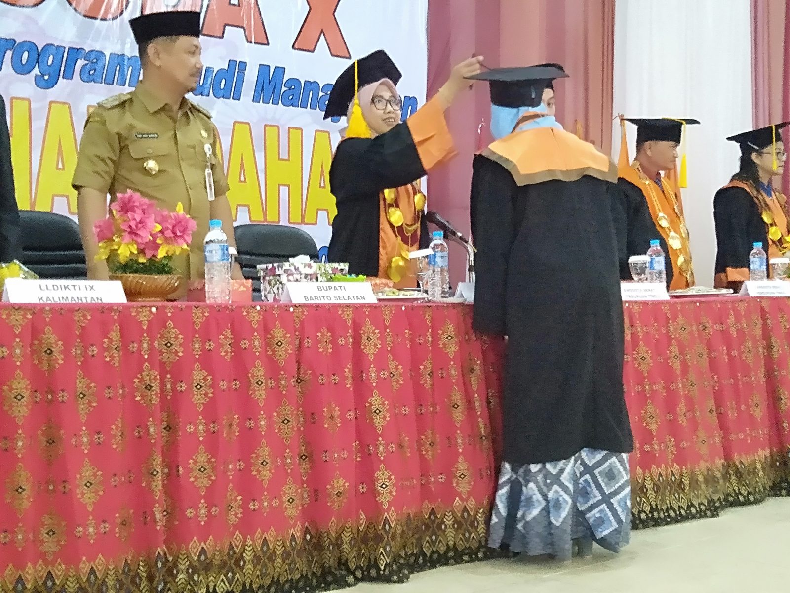 BUNTOK, Sebanyak 29 mahasiswa jurusan manajemen pada Sekolah Tinggi Ilmu Ekonomi (STIE) Dahani Dahanai Buntok diwisuda, Selasa (29/10). Wisuda tersebut sebagai pertanda bahwa mahasiswa telah menyelesaikan pendidikan di kampus STIE Dahani Dahanai.