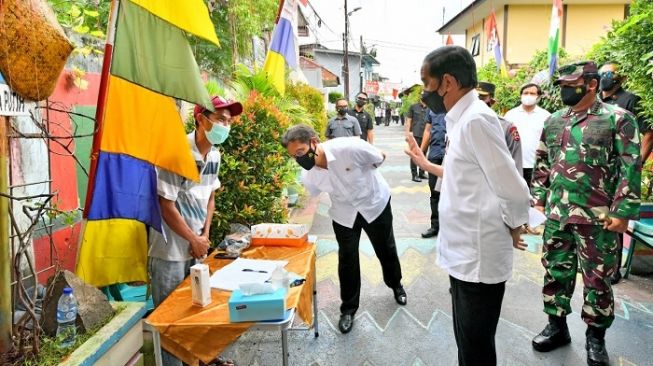 Presiden Jokowi saat melakukan sidak PPKM Mikro di lingkungan RW 01, Rawasari, Cempaka Putih, Jakarta Pusat. (Dok Agus Suparto)