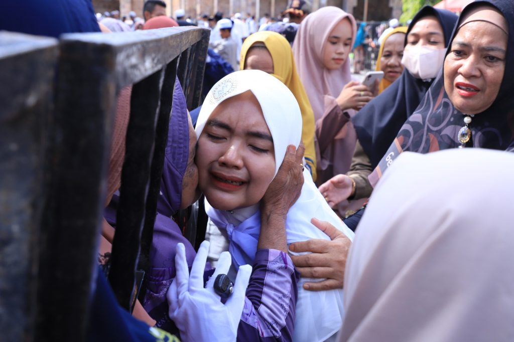 KANALKALIMANTAN.COM, AMUNTAI – Tangis haru keluarga menyertai pelepasan 321 orang calon haji Kabupaten Hulu Sungai Utara (HSU) yang tergabung dalam Kloter 8 Embarkasi Banjarmasin menuju asrama haji di Banjarbaru, Rabu (7/6/2023) pagi.