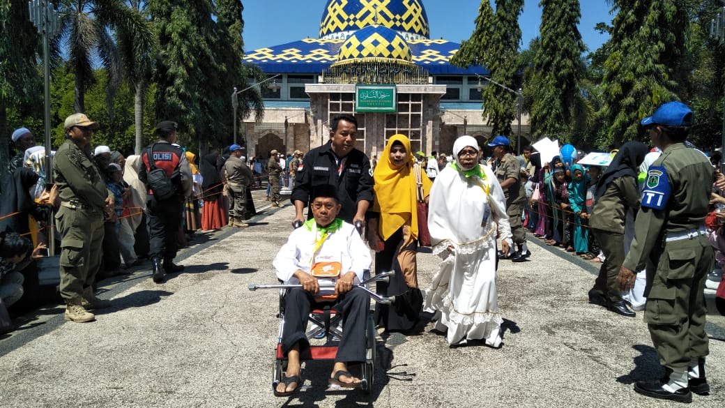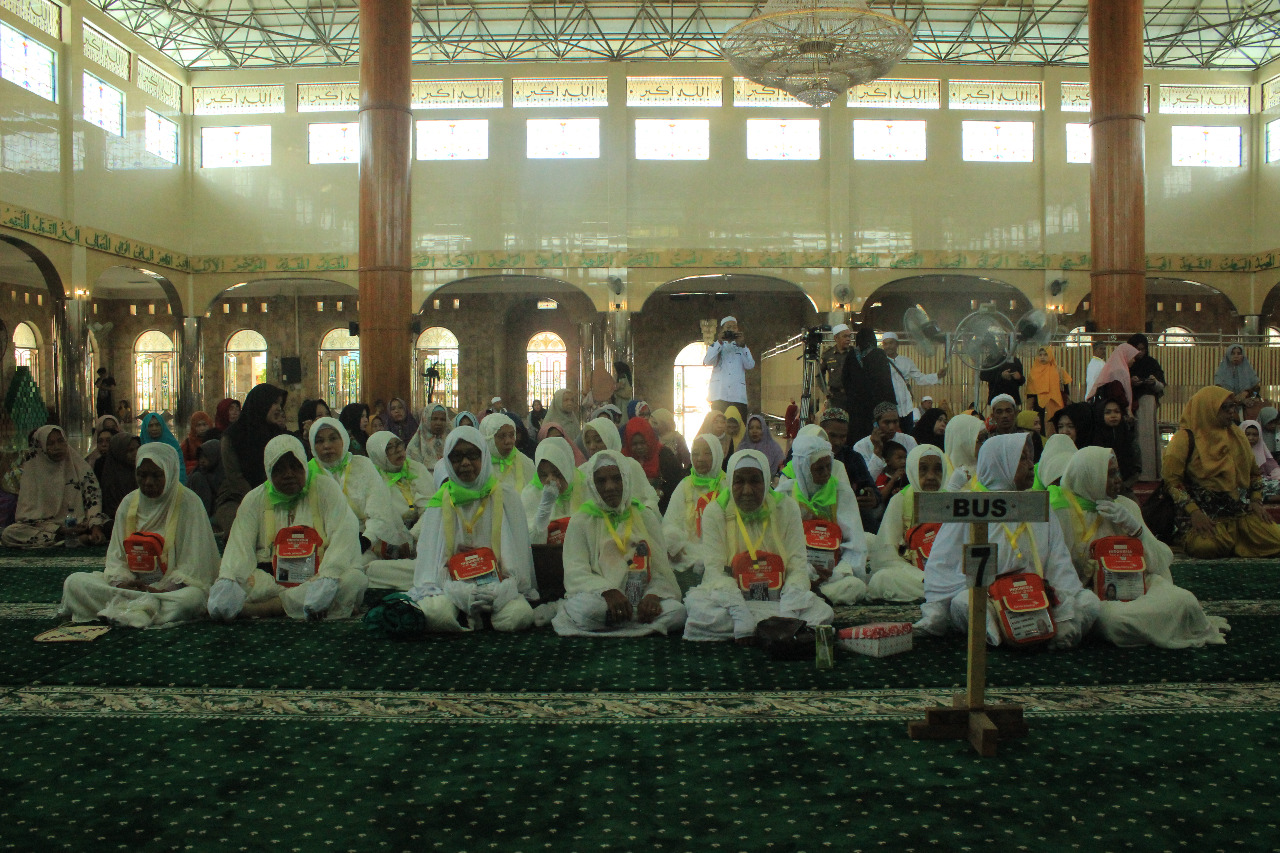 Sebelum diberangkatkan, para CJH terlebih dahulu berkumpul di Mesjid Raya At Taqwa, guna shalat zhuhur berjamaah, sholat hajat dan do’a bersama.