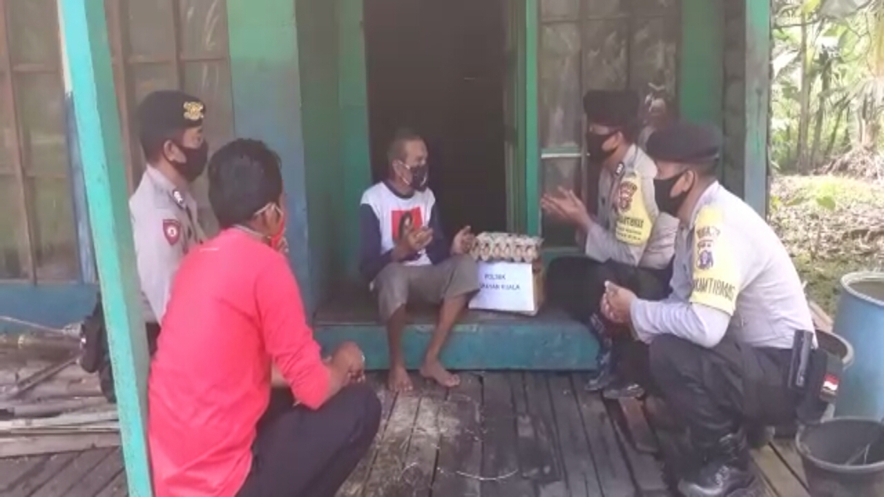 Personil Polsek Kahayan Kuala mengunjungi warga kurang mampu dan sekaligus memberikan bantuan Sembako kepada warga di Desa Tanjung Perawan, Kecamatan Kahayan Kuala.