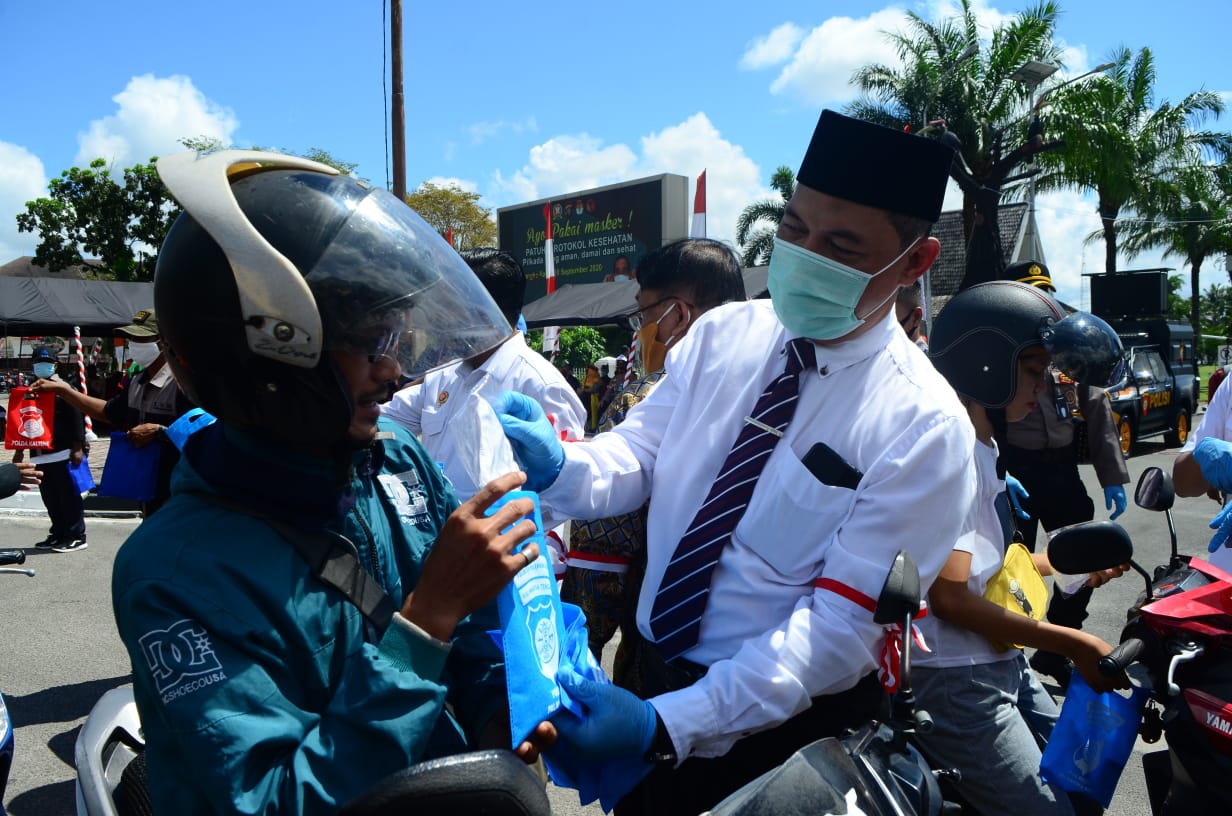 Ratusan ribu masker yang disebar ini dalam rangka kampanye penggunaan masker dan deklarasi kepatuhan protokol kesehatan.