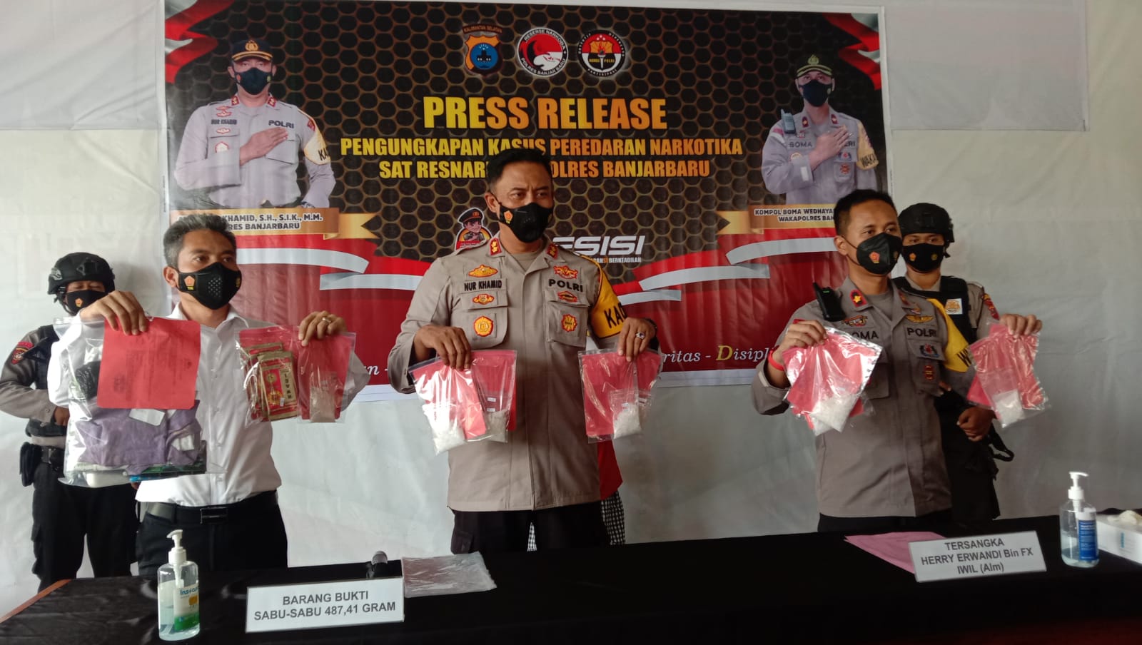 Diungkap Kapolres, kalau jaringan ini merupakan jaringan Malaysia, Samarinda, dan Banjarmasin. Dengan diungkapkannya narkoba sebanyak 487, 41 gram kalau diestimasikan harganya mencapai Rp779 juta dan berhasil menyelamatkan 1.949 jiwa.