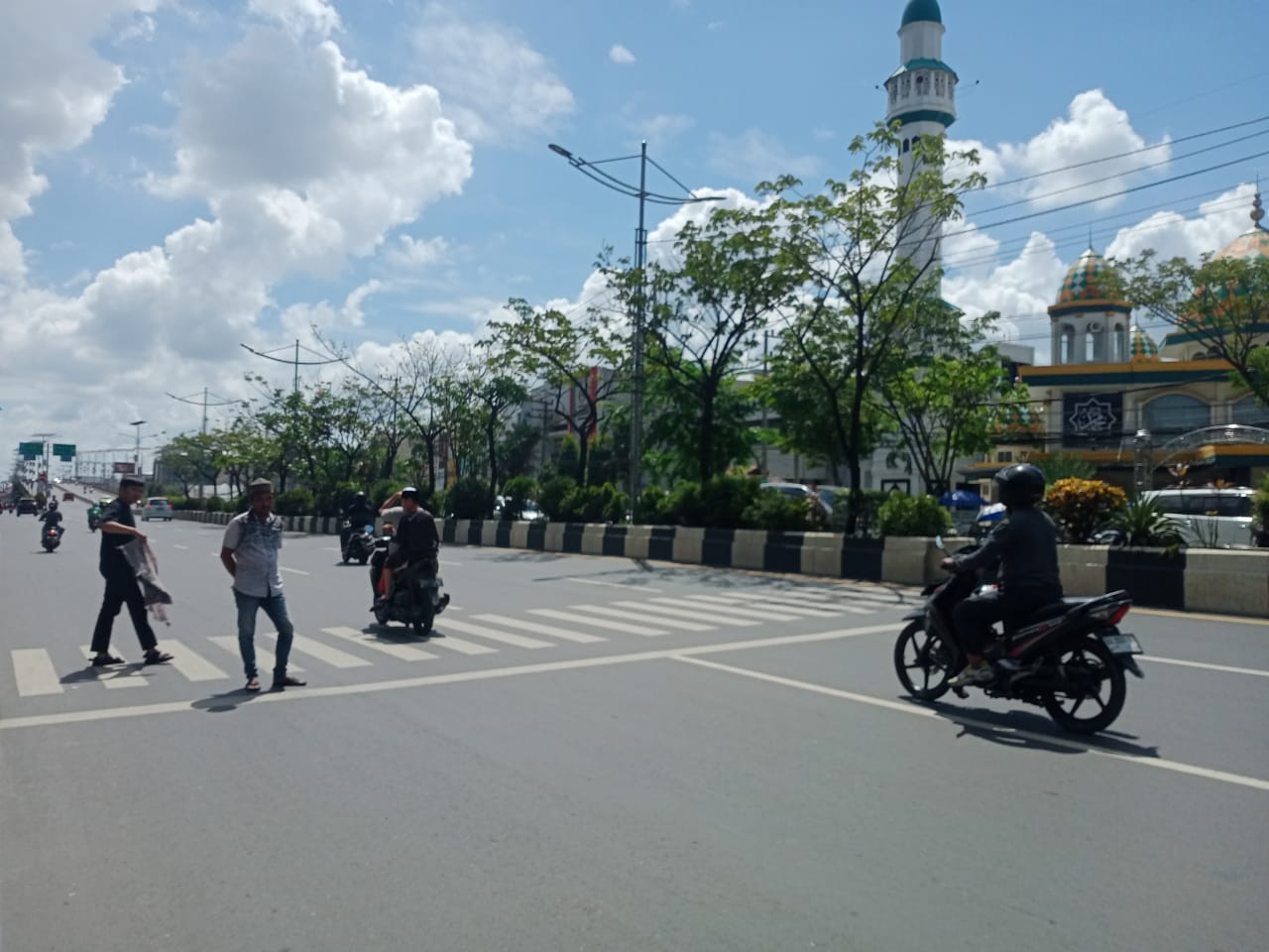 Zebra cross atau tempat penyeberangan di ruas jalan A Yani Km 4,5 Banjarmasin -depan Kampus UIN Antasari- yang rencana akan dibangun JPO. Foto: rizki