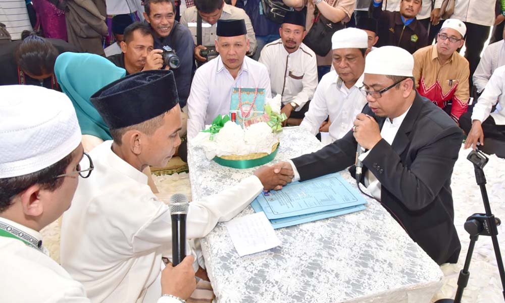 Sebelumnya Paman birin dalam sambutannya mengharapkan mereka yang menikah hari ini bisa membangun bahtera rumah tangga dengan rukun dan damai. “Mudah-mudahan tahun depan dengan jumlah dua kali lipat dari pasangan  yang mengikuti pernikahan massal ini,” kata Paman Birin.
