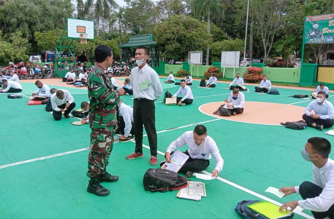 KANALKALIMANTAN.COM, AMUNTAI – Sebanyak 51 peserta dari berbagai latar belakang mulai jalani tes penerimaan Komponen Cadangan (Komcad) Matra Darat yang digelar di markas Kodim 1001/HSU-BLG, Senin (9/5/2022).