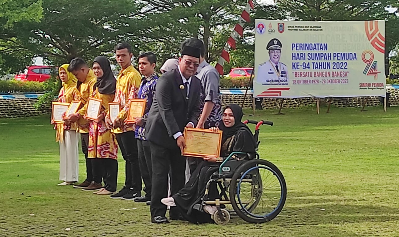 KANALKALIMANTAN.COM, BANJARBARU – Dalam rangkaian upacara Hari Sumpah Pemuda ke 94 tahun 2022 sebanyak 58 Kelompok Usaha Pemuda Produktif (KUPP) menerima bantuan kewirasuhaan dari Pemerintah Provinsi Kalimantan Selatan, Jumat (28/10/2022).