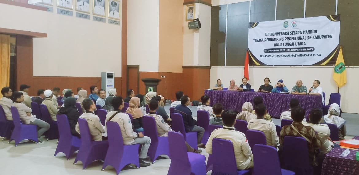 Uji kompetensi digelar Dinas Pemberdayaan Masyarakat dan Desa (PMD) Kabupaten HSU selama 5 hari dari 31 Oktober 2023 sampai dengan 4 November 2023 di aula Dr KH Idham Chalid Amuntai.