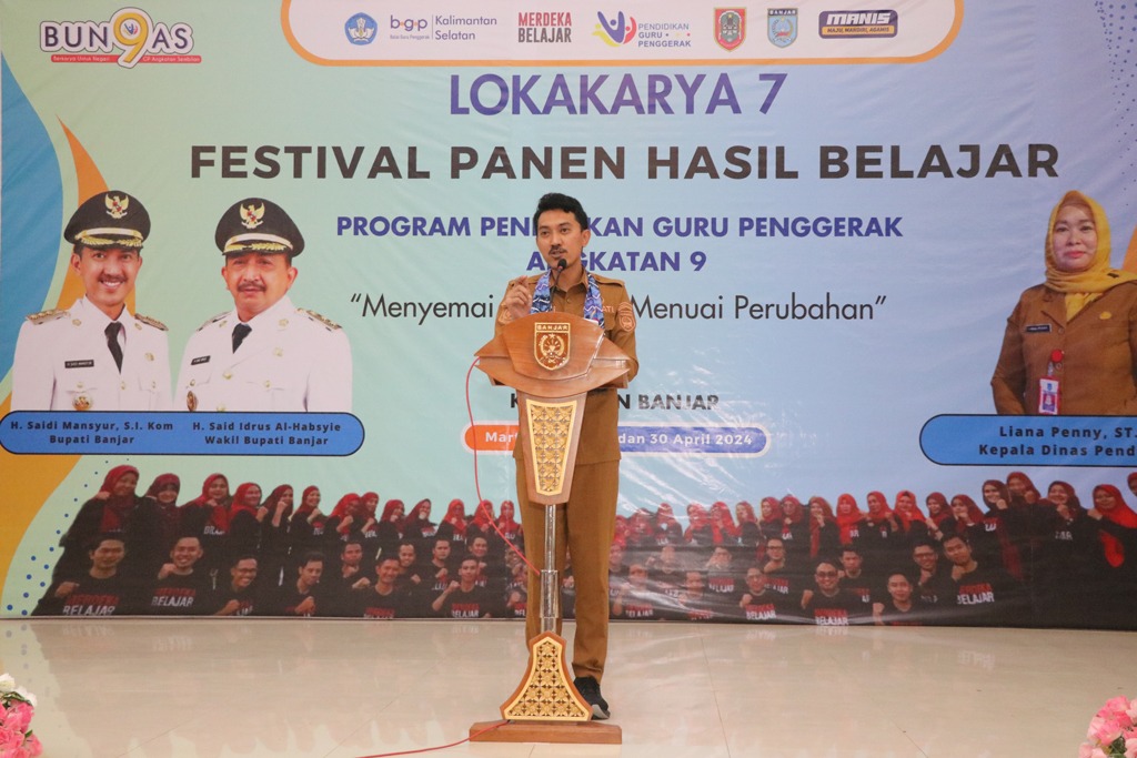 Hal tersebut disampaikannya saat membuka Lokakarya 7 Festival Panen Hasil Pendidikan program pendidikan guru penggerak angkatan 9 dengan tema “Menyemai Inspirasi Menuai Perubahan” di Aula KH Kasyful Anwar, Martapura, Selasa (30/4/2024) pagi.