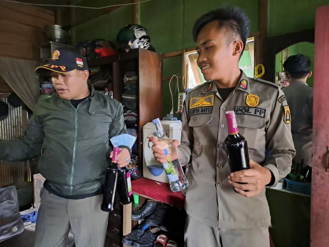 Selain mengamankan 7 orang PSK, Satpol PP Banjarbaru juga mengamankan penjual Miras di Jalan A Yani Km 18, dengan hasil penggeledahan ditemukan ada 4 minuman beralkohol yang disimpan di lemari rumah.