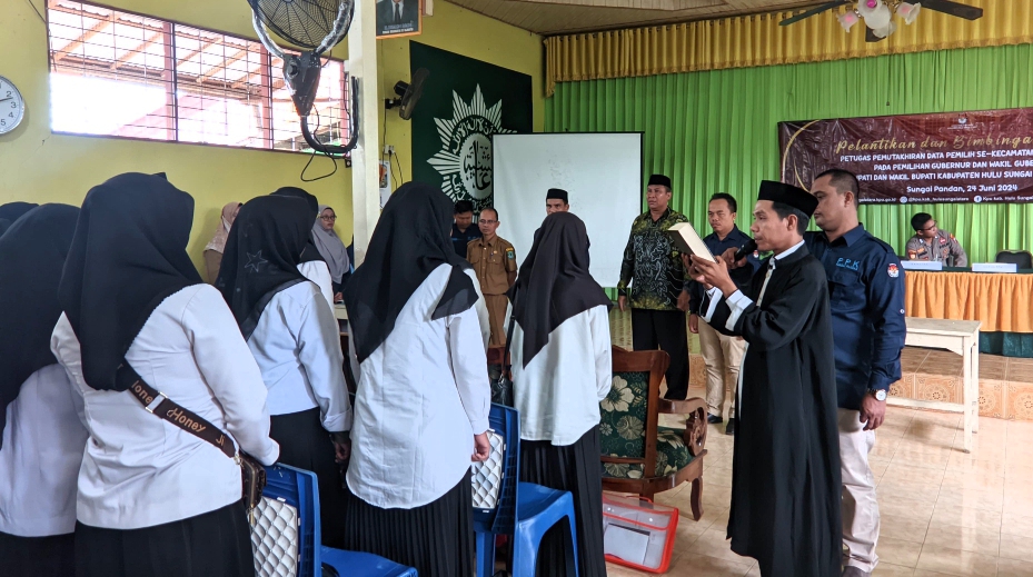 Adapun dalam pelantikan PPDP se Kecamatan Sungai Pandan berjumlah 79 orang dari 58 Tempat Pemungutan Suara (TPS).