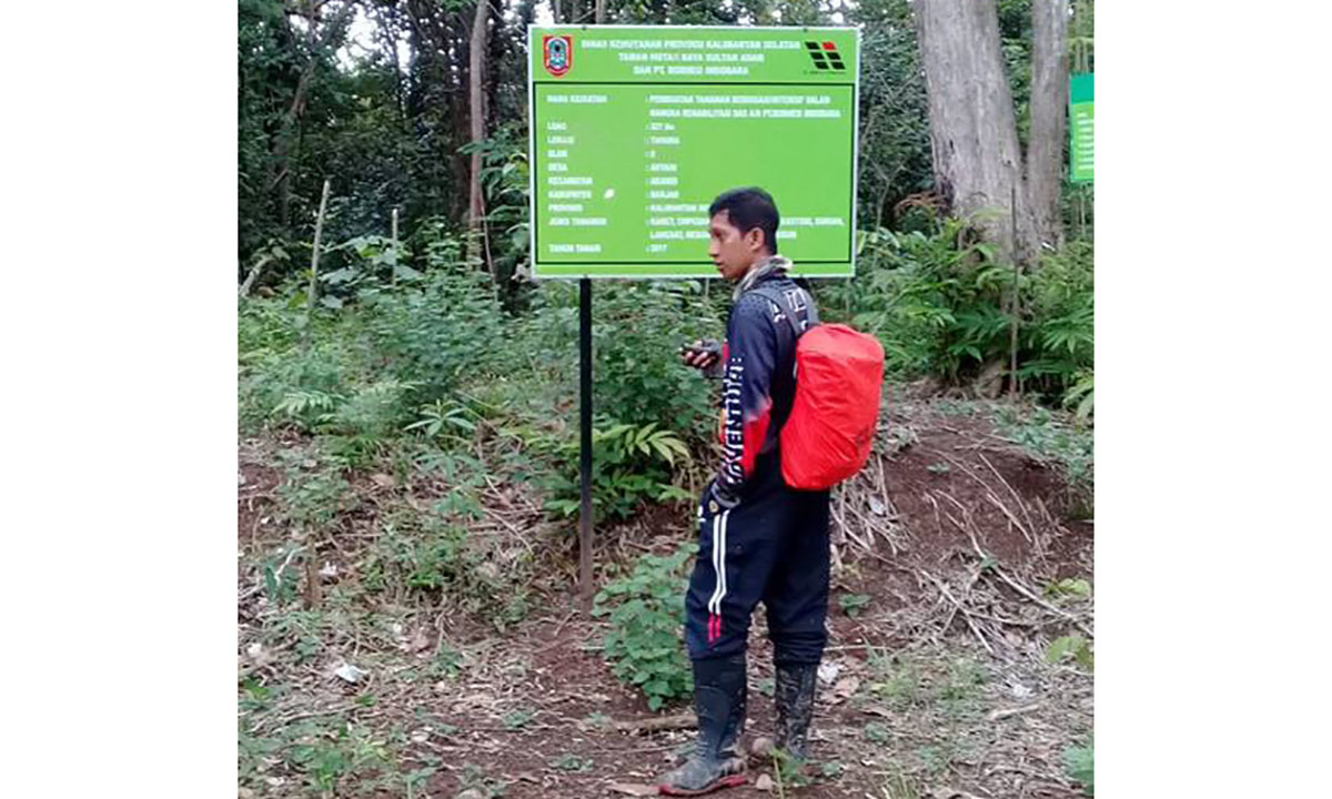 BANJARBARU, Sebagai upaya mensukseskan gerakan revolusi hijau di Kalimantan Selatan yang diantaranya dengan Rehab DAS bagi pemegang IPPKH, petugas pengawas rehab DAS dari Tahura Sultan Adam yaitu Rizani sebagai pengawas pada PT BIB dan Riza Ali sebagai penyuluh kehutanan turun kelapangan memonitor kondisi tanaman di lokasi desa Artain Kec. Aranio Kab Banjar.