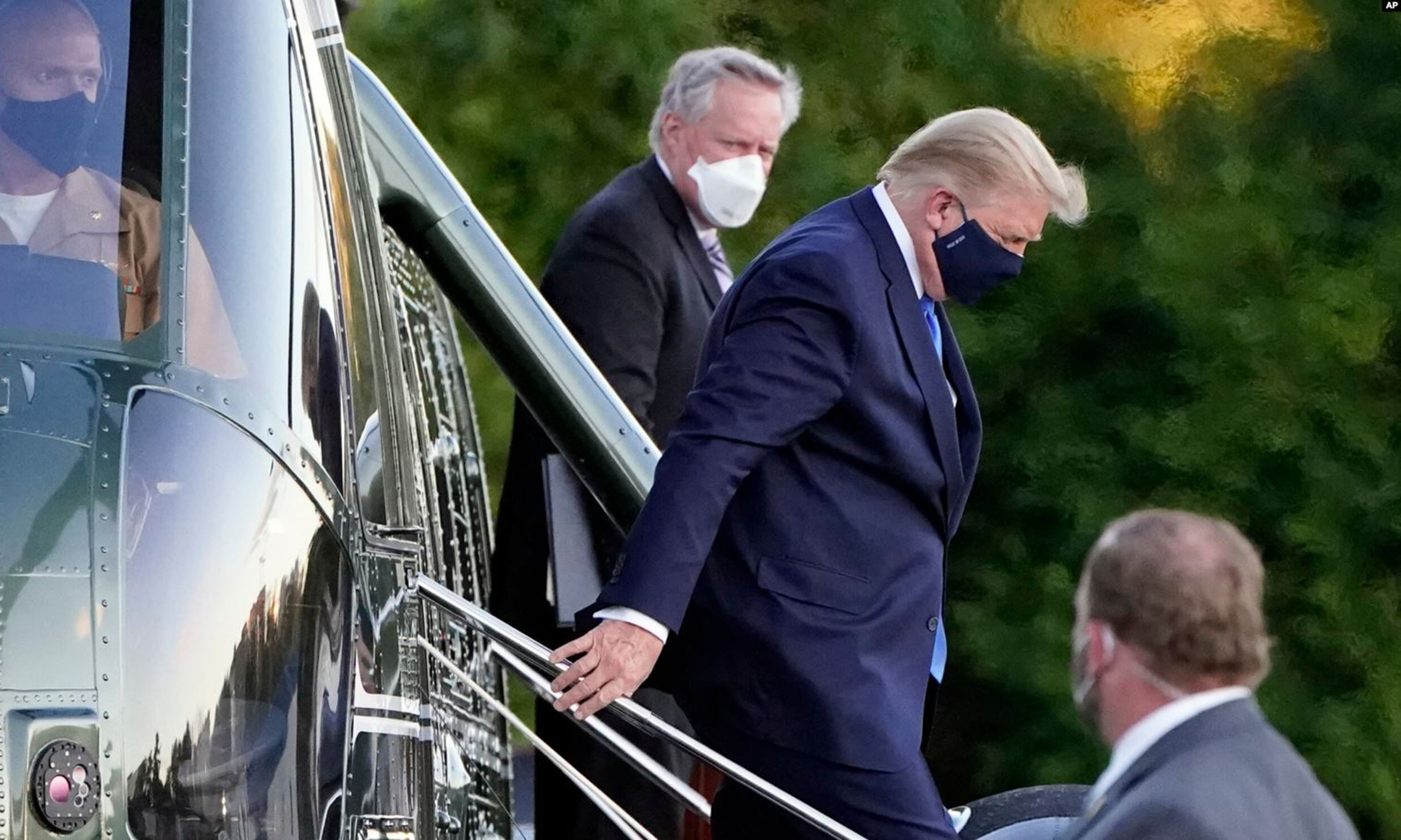 Associated Press melaporkan Trump berjalan keluar dari Gedung Putih dan mengacungkan jempol, tetapi tidak berbicara. Sejumlah pejabat, termasuk agen-agen Secret Service dan staf Gedung Putih tampak mengenakan masker untuk melindungi diri dari presiden yang melakukan perjalanan dengan helikopter.