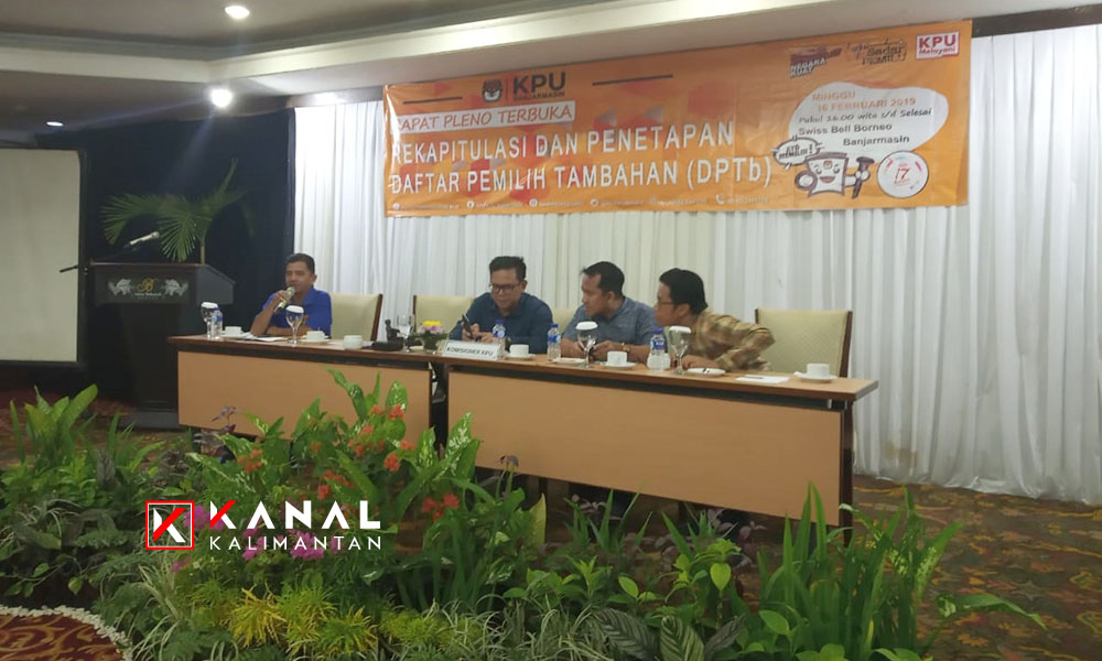 BANJARMASIN, KPU Kota Banjarmasin menetapkan DPTb (Daftar Pemilih Tambahan) yang masuk dalam Pemilu 2019 berjumlah sebanyak 509 pemilih. Hasil itu ditetapkan dalam rapat pleno KPU Kota Banjarmasin, Minggu (17/2), rekapitulasi DPTb. DPTb 509 orang itu dengan rincian pemilih laki-laki berjumlah 349 dan perempuan berjumlah 160 pemilih, tersebar di 5 kecamatan, 52 kelurahan, dan 1.879 TPS.