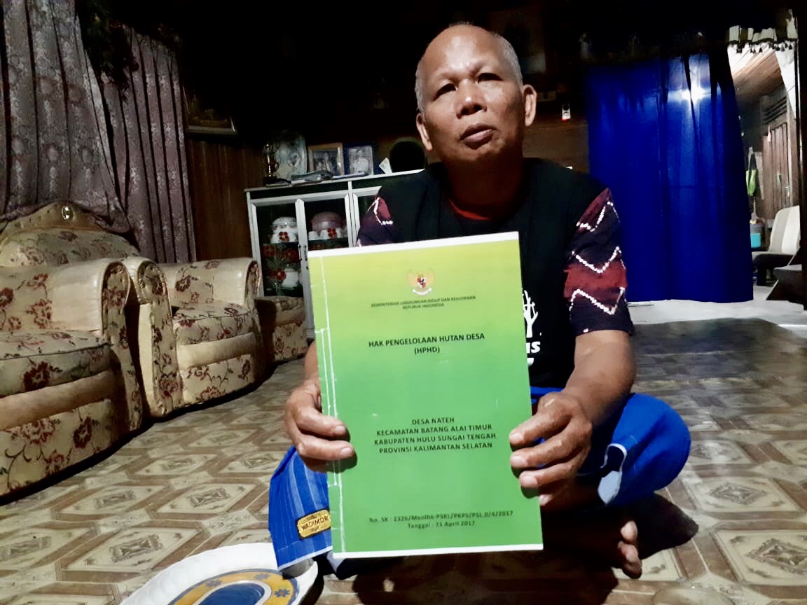 Perlu diketahui, 21 April 2017 Abah Nateh menerima SK Hak Pengelolaan Hutan Desa (HPHD) dari Kementerian Lingkungan Hidup dan Kehutanan RI. SK ini tentang pemberian hak pengelolaan hutan desa kepada lembaga pengelola hutan desa Nateh seluas lebih kurang 1.507 hektare pada kawasan hutan lindung dan hutan produksi tetap di desa Nateh. Abah Nateh menerima SK tersebut langsung dari presiden RI Joko Widodo. Namun, melihat tiba-tiba saja 4 Desember 2017 Kementerian ESDM memberi izin tambang di kawasan Meratus bagi PT MCM, hal ini tentu melukai hatinya, ungkap Abah Nateh.