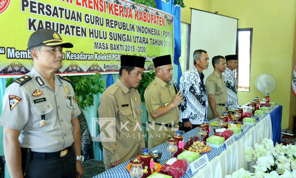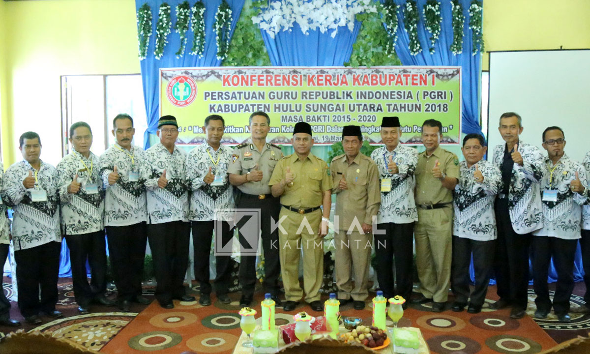 AMUNTAI, Mengusung tema “Membangkitkan kesadaran kolektif PGRI dalam meningkatkan mutu Pendidikan†130 guru dari perwakilan Pengurus Cabang PGRI se-Kabupaten Hulu Sungai Utara (HSU) menghadiri acara Konferensi Kerja Kabupaten I PGRI Kabupaten HSU, Senin (19/3).