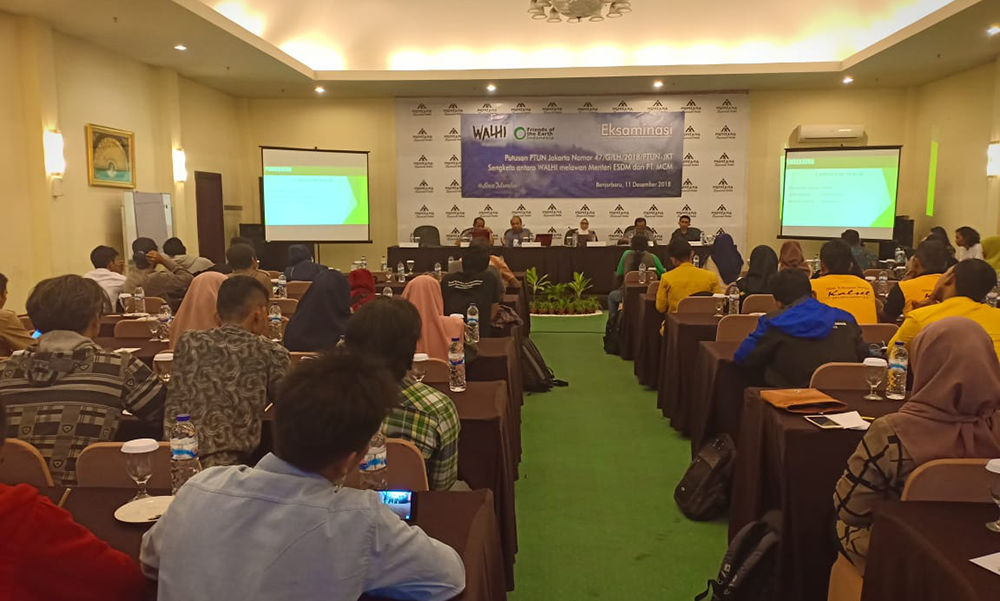 Seperti diketahui, Walhi Kalsel menggugat SK (Surat Keputusan) Menteri ESDM ke PTUN Jakarta .SK menteri itu terkait pemberian izin untuk PT Mantimin Coal Mining (MCM) untuk melakukan penambangan batu bara di Kabupaten Balangan, Tabalong, dan Hulu Sungai Tengah.