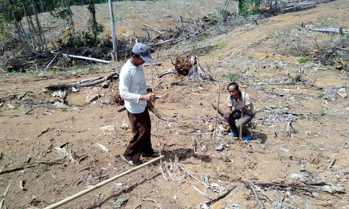 BANJARBARU, KPH Pulau Laut Sebuku melaksanakan monitoring areal agroforestri di desa Kulipak Kecamatan Pulau Laut Timur, Kabupaten Kotabaru, Senin (19/11). Dari hasil kroscek tim di lapangan, kegiatan yang dilaksanakan oleh KTH Sinar Timur yaitu sudah pada tahap pemasangan ajir dan pembuatan lobang tanam, dan luasan lokasi agroforestri yang sudah dilaksanakan pemasangan ajir seluas 15 Ha.