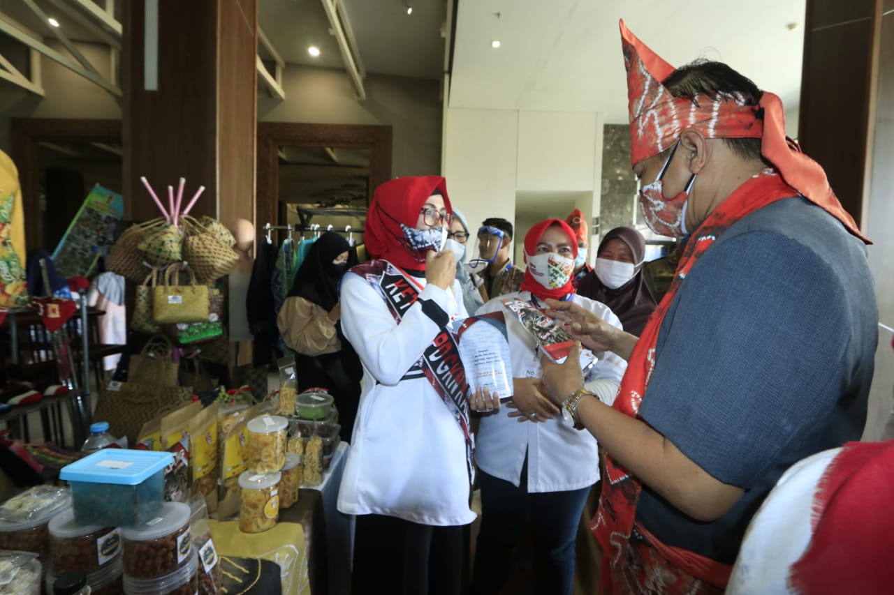 Mengangkat tema kegiatan “Memajukan Produk Lokal” pembukaan pameran produk berlangsung, Selasa (8/6/2021). Dihadiri Pj Gubernur Kalsel Safrizal ZA, Wakil Wali Kota Banjarbaru, Wartono, Ketua DPD GKN Isna Alip, Kepala Dinas Perindustrian Pemprov Kalsel Mahyuni, GM Novotel Wenny Tendean, serta undangan lainnya.