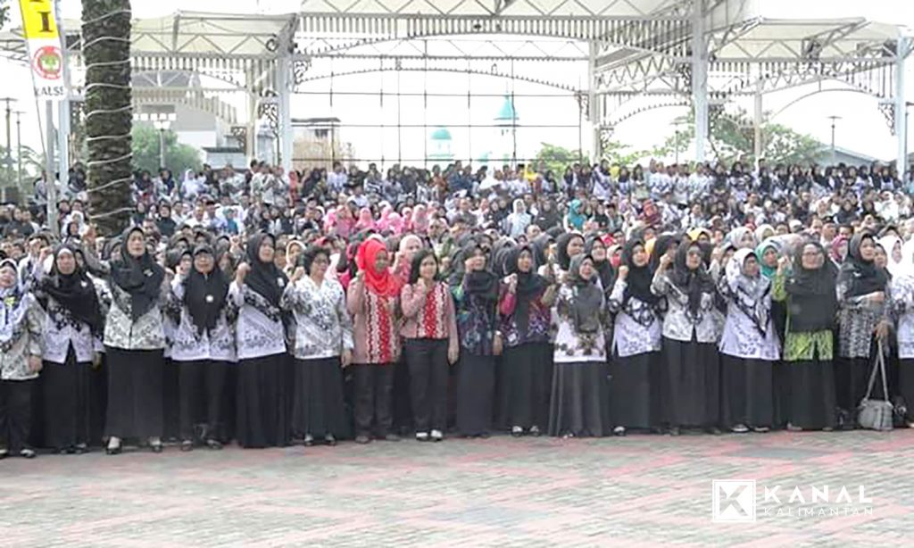 BANJARMASIN, Peringatan Hari Guru ke-72 di halaman Balaikota Banjarmasin menjadi hari paling membahagiakan untuk guru-guru honorer di lingkungan Pemkot Banjarmasin, Sabtu (25/11).
