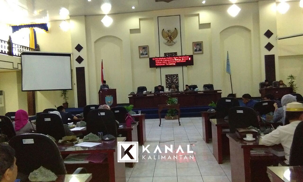 MARTAPURA, Sempat tertunda, empat Rancangan Peraturan Daerah (Raperda) berhasilkan disahkan menjadi Perda dalam rapat paripurna DPRD Banjar, Selasa (10/7). Empat Raperda tersebut masing-masing  Raperda Perubahan Kedua atas Peraturan Daerah Kabupaten Banjar Nomor 8 Tahun 2011 tentang Retribusi Perizinan Tertentu, Raperda Perubahan Kelima Atas Peraturan Daerah Kabupaten Banjar Nomor 7 Tahun 2011 tentang Retribusi Jasa Usaha, Raperda Perubahan Keempat Atas Peraturan Daerah Kabupaten Banjar Nomor 6 Tahun 2011 tentang Retribusi Jasa Umum, serta Raperda Rencana Induk Pembangunan Industri Kabupaten Banjar Tahun 2018-2038.