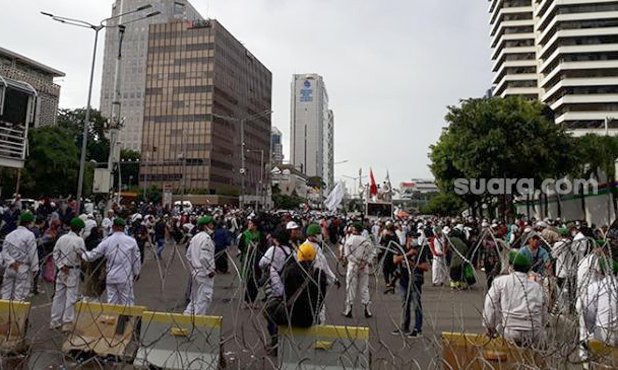 Berdasarkan pantauan Suara.com di lokasi, tampak Juru Bicara PA 212 Ustaz Haikal Hassan menghampiri barrier kawat berduri dengan membawa sepucuk surat. Ia kemudian dihampiri oleh Dirintelkam Polda Metro Jaya Kombes Pol Hirbak Wahyu Setiawan.