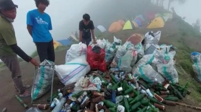 KANALKALIMANTAN.COM – Ratusan botol diduga botol miras ditemukan berserakan di Gunung Rinjani. Botol-botol tersebut kemudian diangkut untuk diturunkan dari gunung. Dalam video yang beredar viral, komunitas Rinjani Meriri memperlihatkan sampah botol miras yang dikumpulkan.
