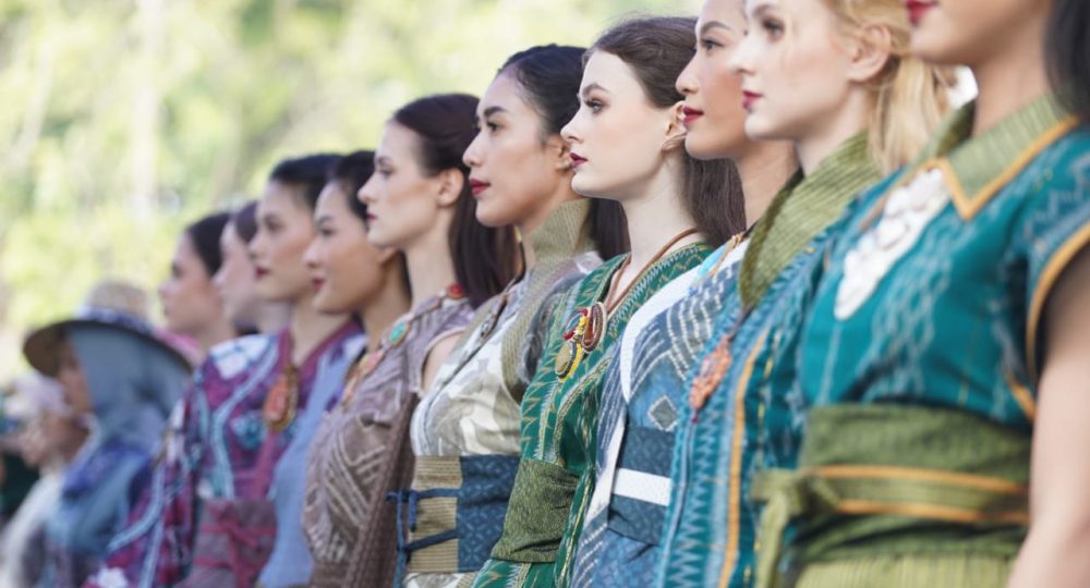 Aksi Model Luar Negeri di Catwalk Fashion Show Sasirangan Gernas BBI Kalsel