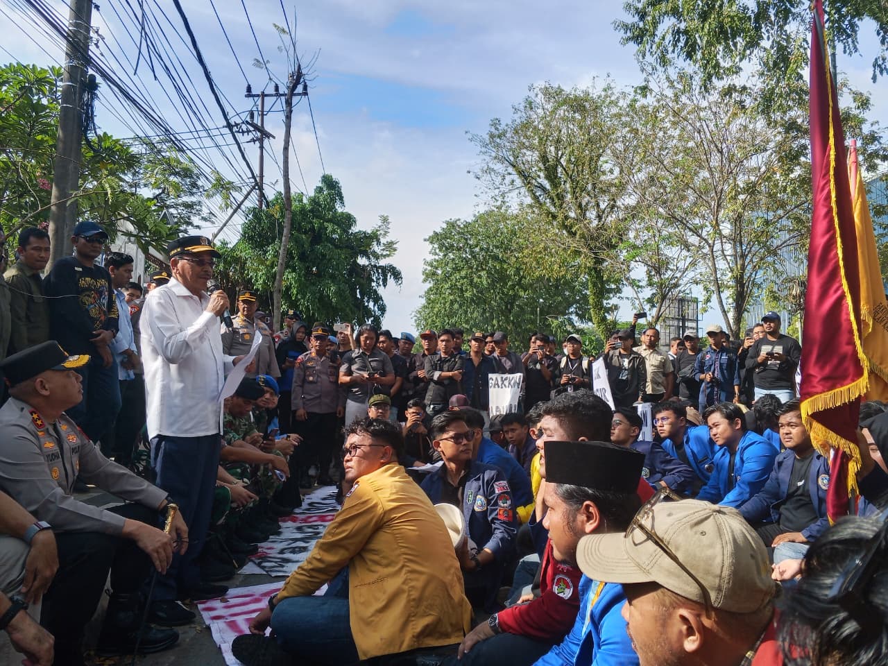 Ketua DPRD Kalsel H Supian HK saat menghadapi unjuk rasa Aliansi BEM Kalsel, Rabu (22/4/2026) siang. Foto: fahmi