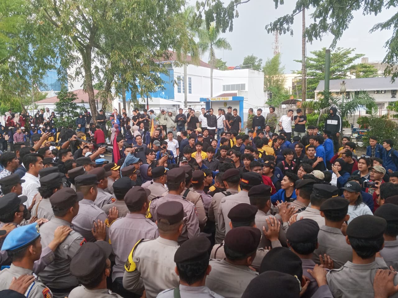 Bentrok kecil mahasiswa dengan polisi di Aksi Reset Indonesia di depan gedung DPRD Kalsel, Kota Banjarmasin, Rabu (22/4/2026). Foto: fahmi