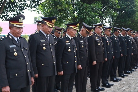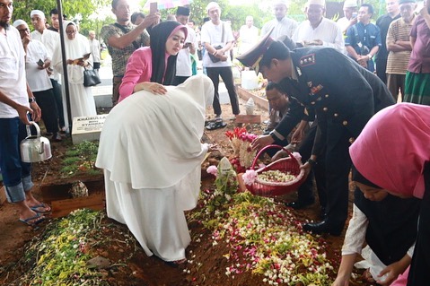 Suasana duka terlihat saat, Kapolres Banjarbaru AKBP Kelana Jaya, S.I.K., M.H memimpin Upacara pemakaman Jenazah IPDA Edi Suprapto bertempat di Pemakaman Muslimin, Guntung Lua Kota Banjarbaru.