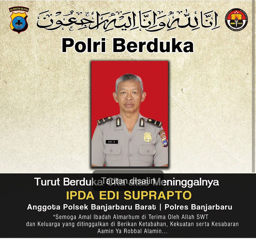 BANJARBARU, Seorang anggota Polres Banjarbaru, IPDA Edi Suprapto (54) meninggal akibat lakalantas usai melaksanakan PAM Salat Tarawih di Masjid Al Mukarramah Trikora, Kota Banjarbaru, Sabtu (1/6).