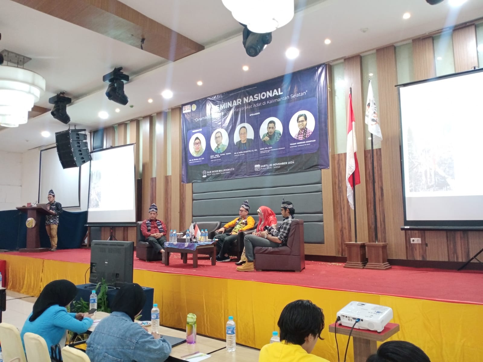 Narasumber dalam seminar nasional diantaranya Guru Besar ULM dan Ketua Pusat studi HAM ULM Prof Mirza Satria Buaana SH MH Phd, dosen UIN Antasari Dr H Nuril Khasyiin Lc MA.