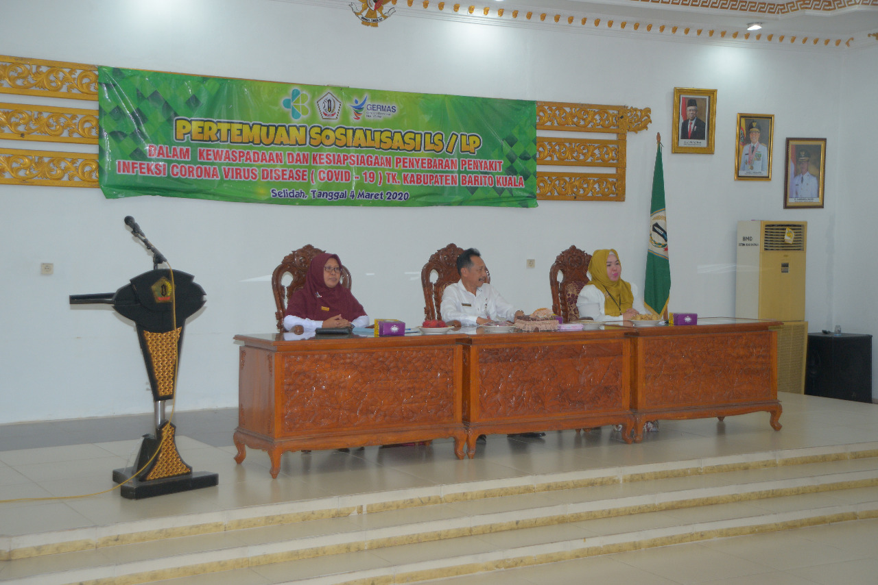 Bupati Barito Kuala (Batola) Hj Noormiliyani AS diwakili Asisten Bidang Kemasyarakatan Akhmad Mawarni MPd lakukan sosialisasi lintas sektor dan lintas program kewaspadaan dan kesiapsiagaan penyebaran virus corona, Rabu (4/3/2020) siang.