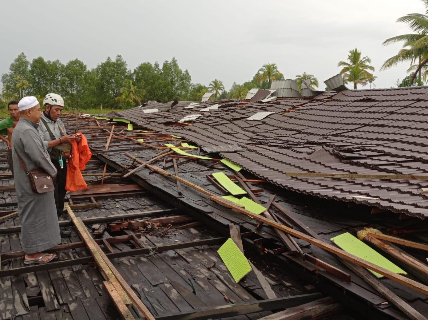 Sementara itu, angin kencang juga menerjang dua ruang kelas MTs Al Mawahib di Jalan Sungai Andai No 121, RT 02, Sungai Jingah, Kecamatan Banjarmasin Utara, Kota Banjarmasin.