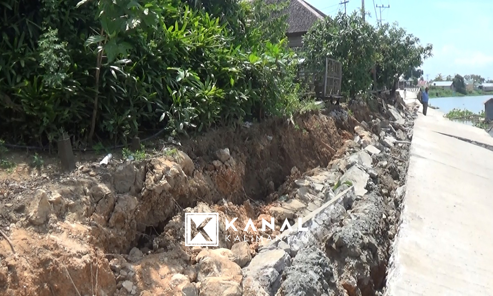 Berdasarkan pantauan Kanal Kalimantan, Senin (24/9), jalan ambruk sepanjang 80 meter -proyek senilai Rp 1,5 miliar itu- longsoran semakin parah dan memperihatinkan. Sekadar diketahui proyek penyiringan dengan beton ini rampung tahun 2017, tapi belum sempat diserah terimakan tersebut bertambah longsor susulan sepanjang 40 meter. Tak hanya sampai disitu, akibat dari longsor susulan tersebut, sedikitnya ada 10 buah rumah warga yang nyaris ikut ambruk ke Sungai Martapura.