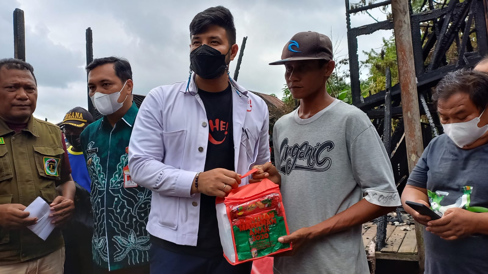 KANALKALIMANTAN.COM, BANJARBARU – Muhammad Ammar Akbar atau lebih dikenal Ammar Zoni pameran Rajo Langit di Sinetron 7 Manusia Harimau, menyapa korban kebakaran di RT 9 Kelurahan Sungai Tiung, Kecamatan Cempaka, Kota Banjarbaru, Kamis (3/2/2022) siang.
