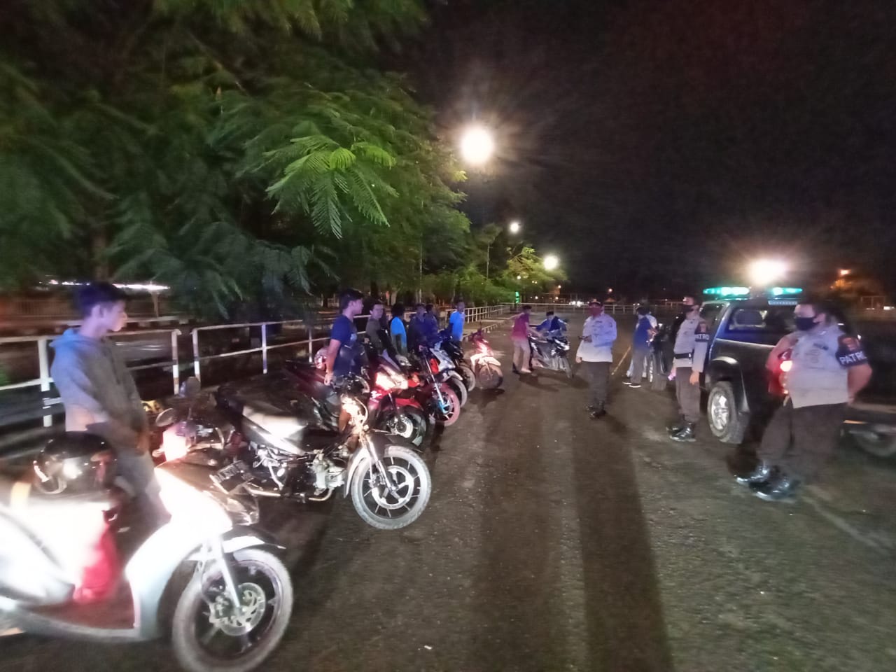 KANALKALIMANTAN.COM, BANJARBARU – Patroli gabungan Polres Banjarbaru mengangkut sepeda motor dan membubarkan anak muda yang nongkrong diduga melakukan balap liar di lapangan Murjani, Minggu (26/4/2020) dinihari sekitar pukul 02.30 Wita.
