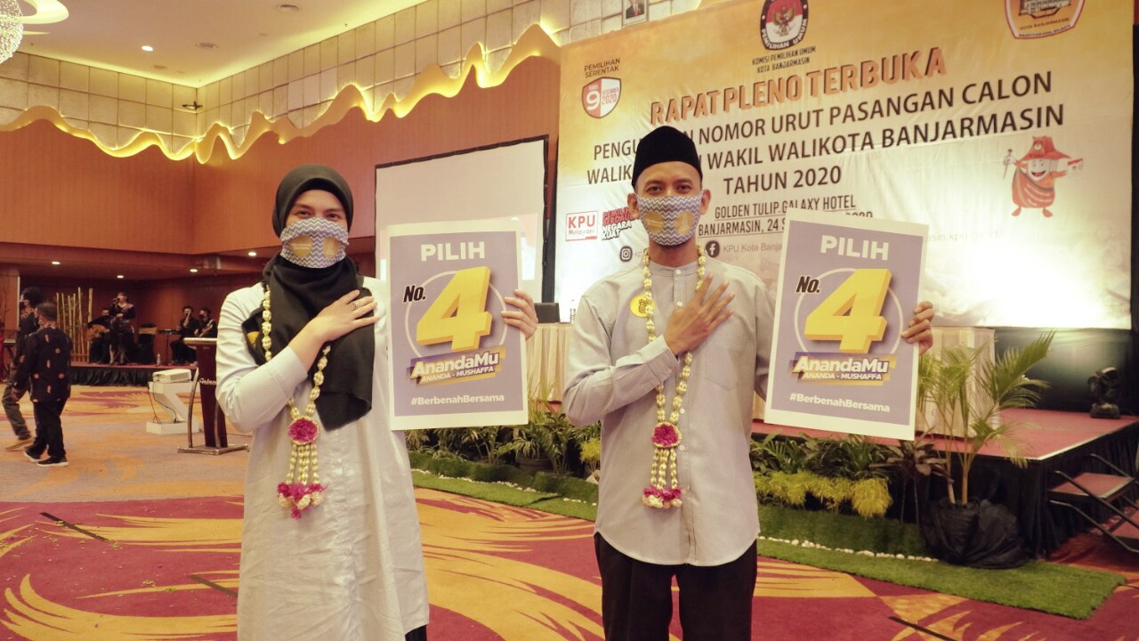 Dalam pengundian nomor urut Paslon tersebut pasangan Calon Walikota dan Wakil Walikota Banjarmasin Hj Ananda dan H Mushaffa Zakir Lc mendapatkan nomor urut 4.