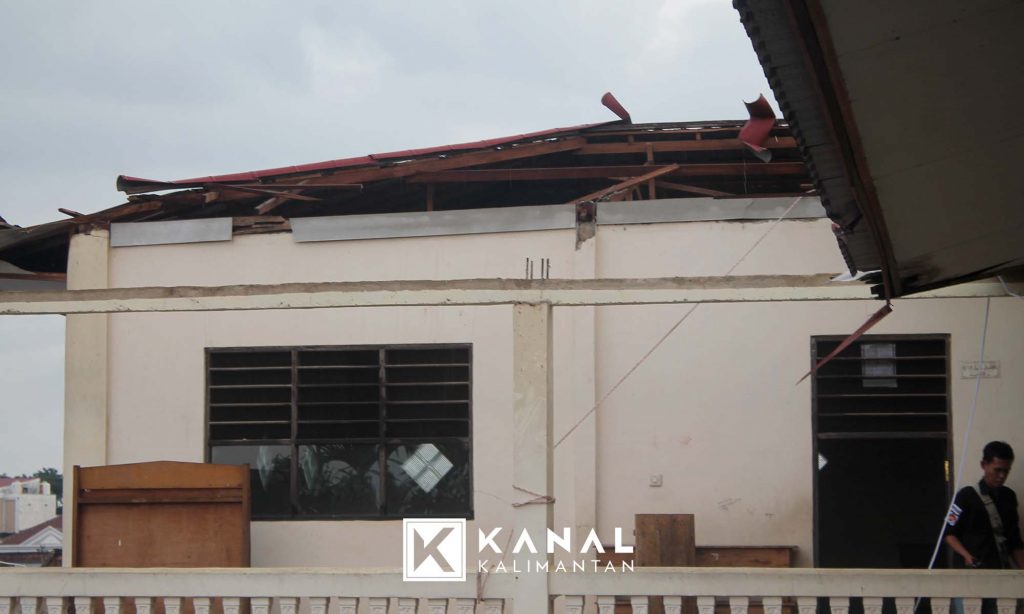 Tak hanya menyebabkan 7 rumah rusak di Murung Kenanga, angin kencang juga hancurkan atap 10 ruang kelas di Madrasah Diniyah Patih Mangun Jaya, Jalan Kurnia, Kelurahan Pasayangan Utara, Kecamatan Martapura, Kabupaten Banjar.