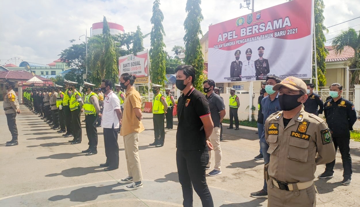 Apel pengamanan malam tahun baru 2021 di halaman Mapolres HSU, Rabu (30/12/2020) siang. Foto: humas polres hsu