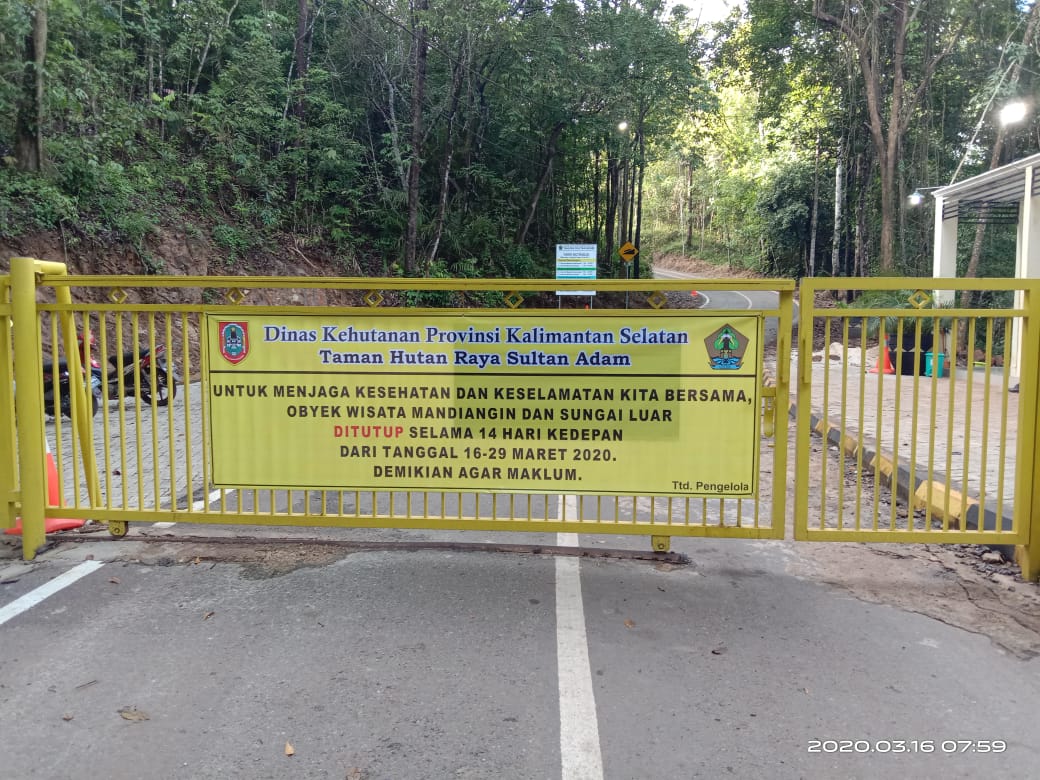 Penutupan sementara sesuai dengan arahan Kepala Dinas Kehutanan Provinsi Kalsel Hanif Faisol Nurofiq, melalui Kepala Tahura Sultan Adam Ainun Jariah yang memerintahkan agar kedua objek wisata Tahura Sultan Adam Mandiangin dan Wisata Bukit Batu Sungai Luar ditutup untuk umum.