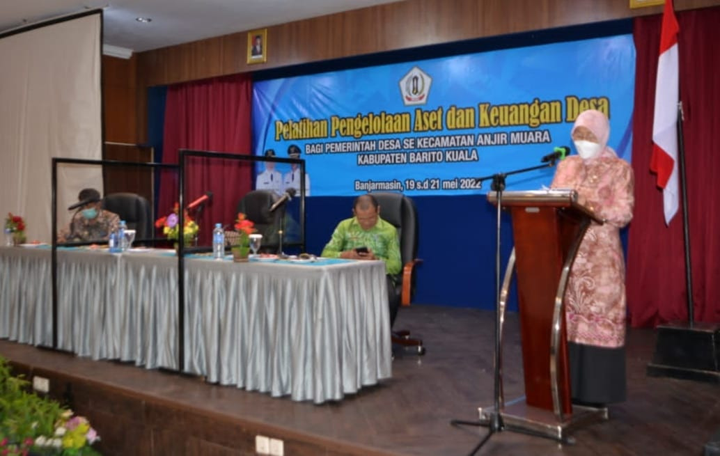 KANALKALIMANTAN.COM, MARABAHAN – Para Aparat Desa (Apdes) se-Kecamatan Anjir Muara diberi pelatihan Pengelolaan Aset dan Keuangan Desa. Bupati Barito Kuala (Batola) Hj Noormiliyani AS turut membuka pelatihan yang berlangsung sejak 19-21 Mei 2022 di Hotel Rodhita Banjarmasin, Kamis (19/05/2022) sore.