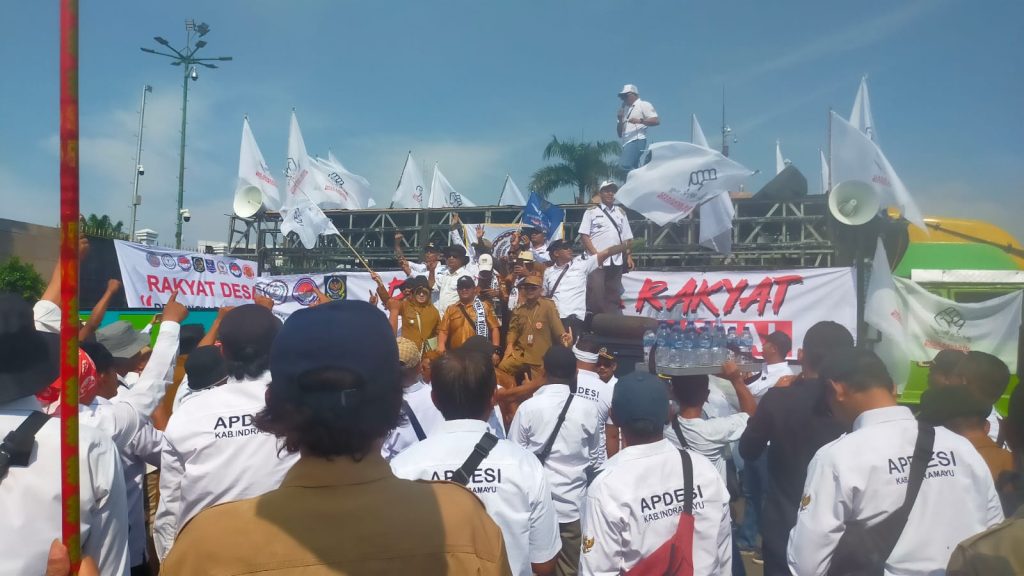 Demo yang digelar Asosiasi Pemerintah Desa Seluruh Indonesia (Apdesi) itu mendesak percepatan pengesahan revisi Undang Undang Nomor 6 tahun 2014 tentang Desa.